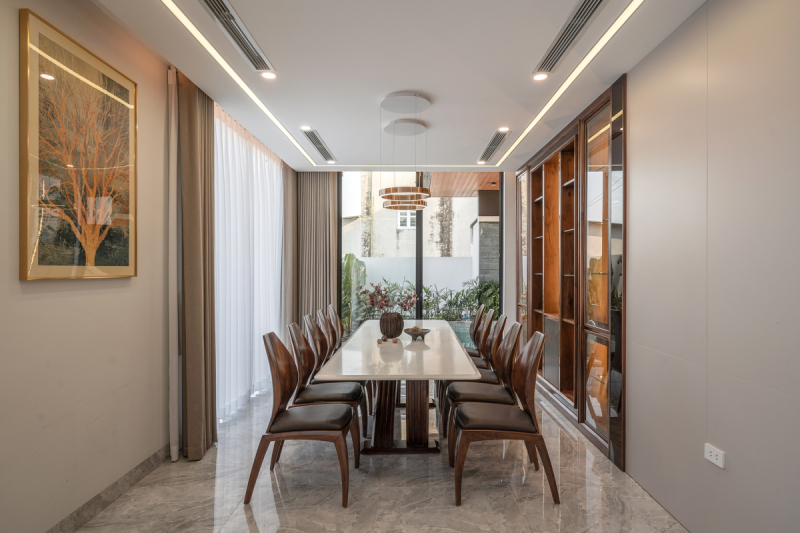 Công trình biệt thự Pagini tại KĐT T&T Long Xuyên không chỉ chú trọng đến việc sử dụng gỗ tự nhiên mà còn thể hiện phong cách hiện đại sang trọng. Sự kết hợp này tạo ra sự cân bằng hoàn hảo giữa vẻ ấm áp của gỗ và vẻ hiện đại của các vật liệu khác toát lên vẻ sang trọng và tinh tế.